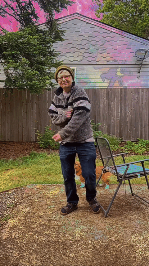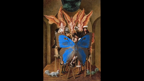 Rolling Stones in drag hanging out with Remedios Varo's Vegetarian Vampires, animated version