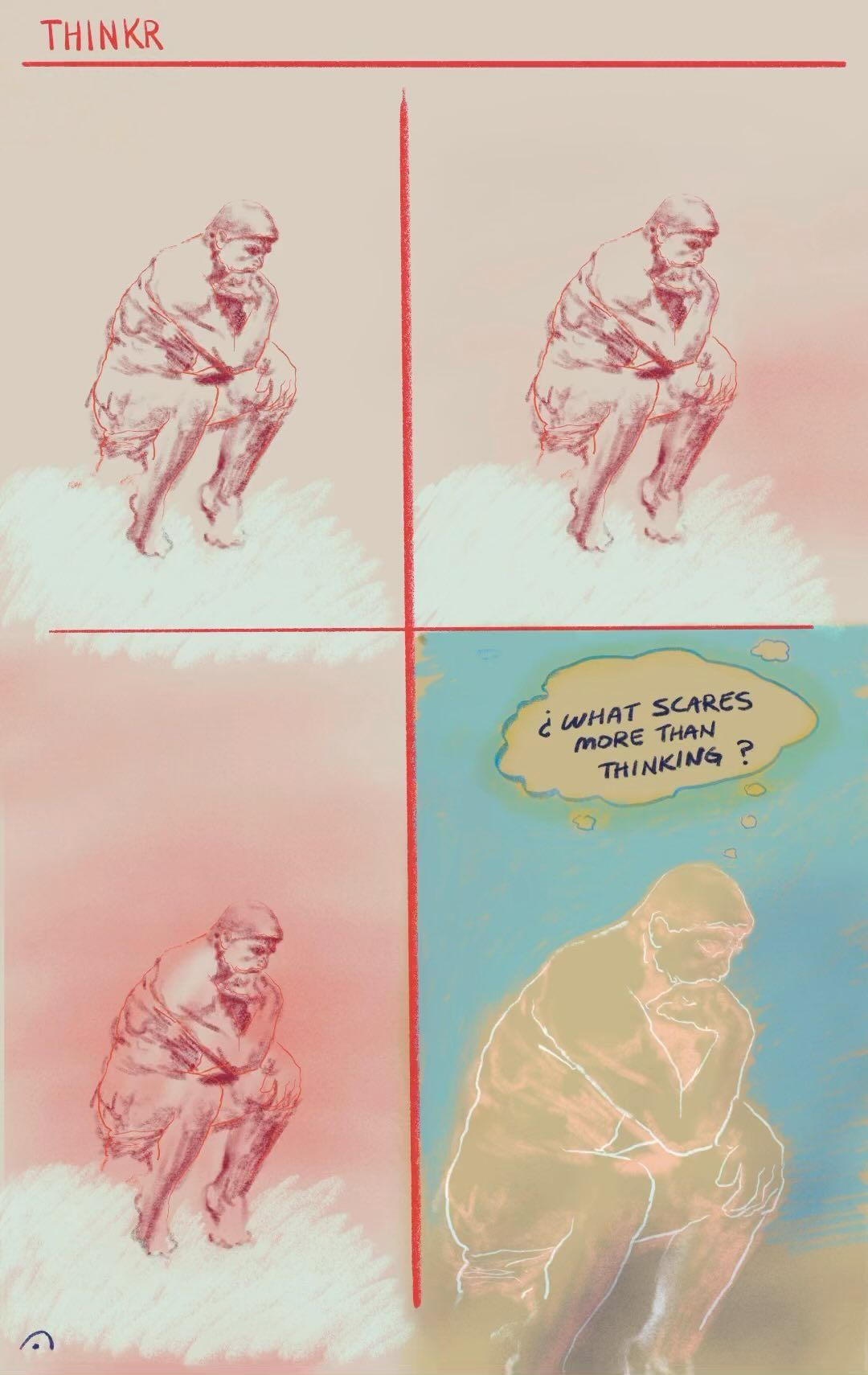 to me, creating is not just the concept of making something for oneself, but it’s about creating something that can be shared with others. you can make the best painting in the world, but if you don't share it, who's gonna see and appreciate it? i believe the point of creating is also to connect. i'm not here to make people think anything really. i would prefer to make them feel something. one of my favorite quotes is “art should disturb the comfortable and comfort the disturbed.”